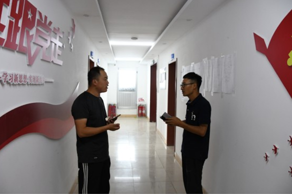 晚餐后趙文頂和孫明慶修理被大雨損壞的門把手。項(xiàng)目部成員共同呵護(hù)起項(xiàng)目部溫暖的家。