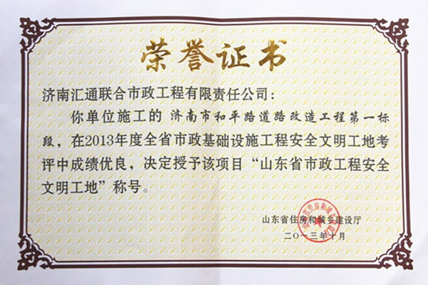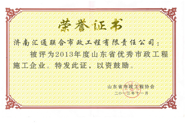 山東匯通建設集團有限公司是成立于2003年的國有大型企業(yè),注冊資本金3億元,擁有市政公用工程施工總承包壹級資質(zhì)、鋼結(jié)構(gòu)工程專業(yè)承包資質(zhì),是山東省市政行業(yè)知名企業(yè)、濟南市市政行業(yè)骨干企業(yè),通過質(zhì)量、環(huán)境、職業(yè)健康安全一體化管理體系認證。