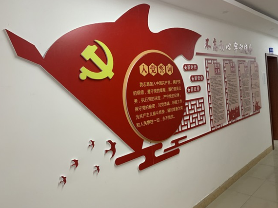 項(xiàng)目部走廊中設(shè)置了黨建文化長(zhǎng)廊。發(fā)揮黨建的引領(lǐng)作用,帶領(lǐng)項(xiàng)目部成員,發(fā)揚(yáng)“三牛精神”,青春閃光在一線,勇當(dāng)建設(shè)排頭兵。