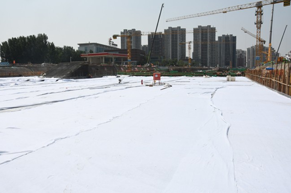 他力薦新工藝應(yīng)用,對(duì)于大體積混凝土的養(yǎng)護(hù)工作,初期養(yǎng)護(hù)內(nèi)外溫差大,不宜灑水養(yǎng)護(hù)。項(xiàng)目部采用新式水能量膜養(yǎng)護(hù)+土工布保溫的方式,同時(shí)布置測(cè)溫點(diǎn)實(shí)時(shí)監(jiān)控砼內(nèi)外溫度,使養(yǎng)護(hù)工作得以量化,用數(shù)據(jù)說話,及時(shí)分析砼內(nèi)外偏差原因,適度調(diào)整,確保主體混凝土質(zhì)量。(混凝土節(jié)水保濕養(yǎng)護(hù)膜是以新型可控高分子吸水材料為核心,以塑料薄膜為載體,通過設(shè)備加工復(fù)合而成的卷材產(chǎn)品。其中高分子材料可吸收自重200倍的水分,吸水膨脹后變成透明的晶體狀,把液態(tài)水變成固態(tài)水,每平方米養(yǎng)護(hù)膜可蓄水0.5KG,成為一個(gè)固態(tài)的微型水庫,然后通過毛細(xì)管的作用向混凝土養(yǎng)護(hù)面滲透,同時(shí)不斷吸收混凝土在水化熱過程中產(chǎn)生的蒸發(fā)水,因此在一個(gè)養(yǎng)護(hù)期內(nèi)總能保持混凝土表面濕潤(rùn)。)