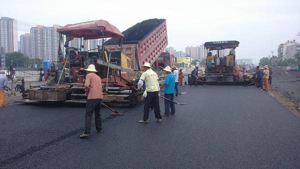 6月23日,二環(huán)南四標進行立交橋下快車道瀝青攤鋪??燔嚨赖酌鎸佑么至J紸c-25面積為12000平方,中面層用中粒式Ac-16面積為14300平方。攤鋪前攤鋪項目部提前計劃,合理安排,共組織4臺攤鋪機,2臺壓路機;攤鋪過程中現(xiàn)場施工人員緊密配合,加強對每一環(huán)節(jié)檢測控制與管理,保證了攤鋪質量。預計到26日完成此次攤鋪任務。