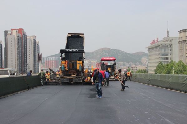 為保證此次試驗段攤鋪順利進行,公司領導和各部門多次到場指導,同時攤鋪項目部和二環(huán)南四標項目部密切配合,精心策劃和研究橋面瀝青砂防水層施工方案。此次試驗段攤鋪將合理確定施工機械數(shù)量及組合方式,確定攤鋪溫度、攤鋪速度、平衡梁找平方式、松鋪系數(shù)、接縫方法等操作工藝和技術數(shù)據(jù),為進一步完善設計及施工方案,確保后續(xù)橋面瀝青攤鋪施工質量、建設精品工程打下堅實基礎。