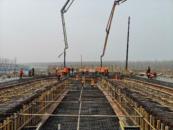 3月15日12時(shí),匯通公司沭陽(yáng)快速路二期工程義烏路-慈溪路上跨橋第四聯(lián)底板混凝土開(kāi)始澆筑,經(jīng)過(guò)16小時(shí)的晝夜奮戰(zhàn),凌晨4點(diǎn)澆筑完成。 義烏路-慈溪路上跨橋全長(zhǎng)全長(zhǎng)1406.9m,共13聯(lián),第四聯(lián)箱梁結(jié)構(gòu)為4跨×28m,設(shè)計(jì)混凝土方量2168m3,分兩階段進(jìn)行澆筑,第一階段澆筑的底板+腹板混凝土方量為1102m3。第四聯(lián)箱梁底板混凝土的澆筑標(biāo)志著義烏路慈溪路上跨橋上部結(jié)構(gòu)開(kāi)始進(jìn)入循環(huán)施工,對(duì)于高架橋施工進(jìn)度控制具有重要意義,澆筑過(guò)程中安排專人對(duì)支架模板進(jìn)行巡視監(jiān)測(cè),支架結(jié)構(gòu)穩(wěn)定無(wú)明顯變形,模板穩(wěn)固未出現(xiàn)漏漿問(wèn)題。 后續(xù)施工中,項(xiàng)目部將再接再厲,繼續(xù)保持昂揚(yáng)斗志,嚴(yán)格按計(jì)劃組織施工,預(yù)計(jì)2